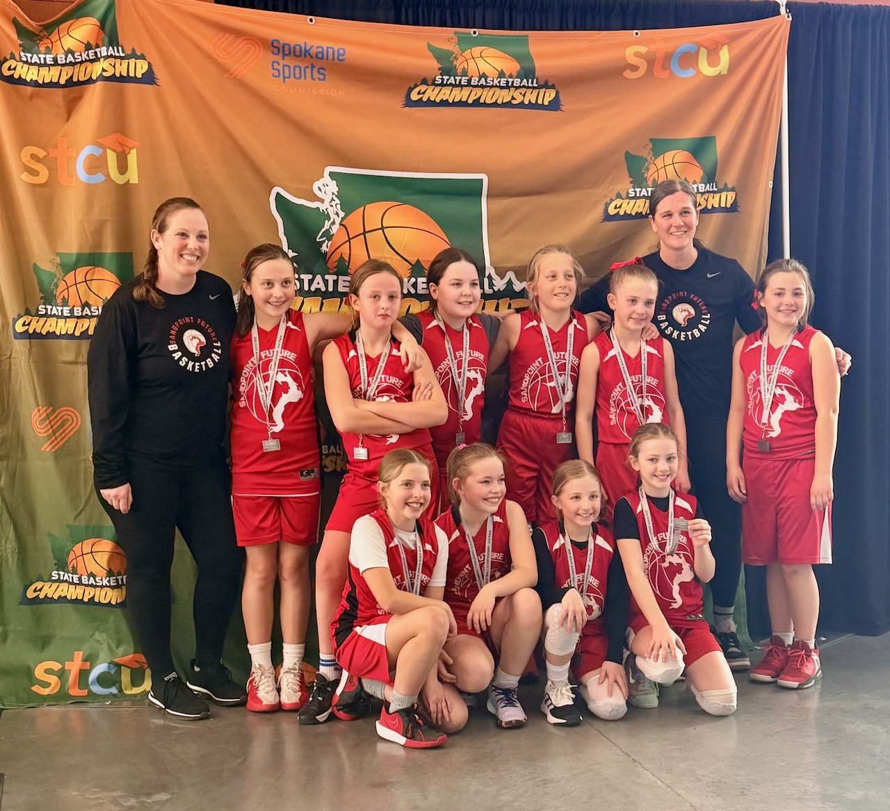March 13-15, 2026 – The 4th Grade Future girls team went 4-1 to claim 2nd place in the School Silver division at the Washington State Basketball Championship Tournament at The Podium in Spokane, WA.