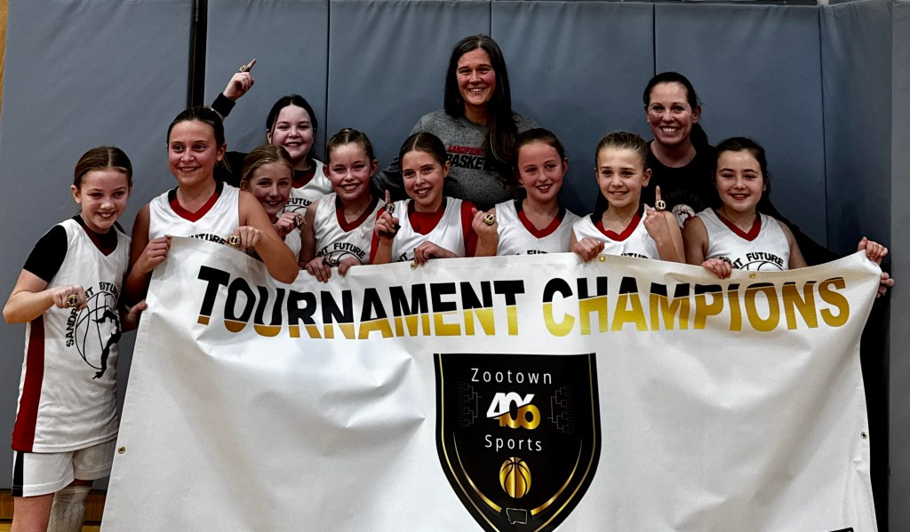 The Sandpoint Future 4th Grade Girls basketball team went an undefeated 5-0 to win the Zootown Jump tournament held Jan. 3 and 4 at the Pfahler Sport Specific Complex and DeSmet and Meadow Hill Middle School’s, all located in the Greater Missoula Area. Sandpoint Future defeated the Lady Broncs of Frenchtown twice (34-20; 34-7), Full Court 4th of Missoula twice (26-10; 27-12) and the Dillon Beavers (26-6) to capture what was their second consecutive undefeated tournament title. With the tournament victory, the team has now qualified for the Montana Middle School State Tournament, set to be held March 6 at Fergus High in Lewistown, in addition to having already qualified for the Washington Middle School State Tournament earlier this season. Head coach Karly Malone said this past weekend was a true team effort, with every player scoring, playing team defense and contributing impactful minutes.